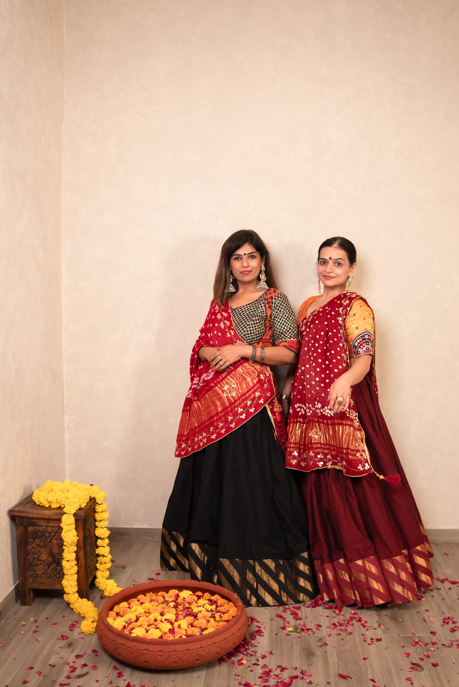 Maroon Chaniya Choli with Mustard Blouse & Bandhej Dupatta